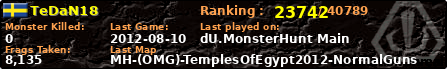 | Server | Map | LastGame | Score | Teamscore | Monsterleft | Deaths | Suicides | TKs | Distance | Playtime | |