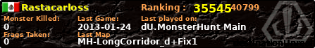 | Server | Map | LastGame | Score | Teamscore | Monsterleft | Deaths | Suicides | TKs | Distance | Playtime | |