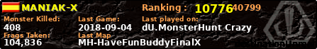 | Server | Map | LastGame | Score | Teamscore | Monsterleft | Deaths | Suicides | TKs | Distance | Playtime | |