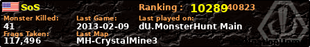 | Server | Map | LastGame | Score | Teamscore | Monsterleft | Deaths | Suicides | TKs | Distance | Playtime | |
