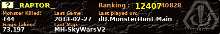 ![]() | MH-SkyWarsV2 | 2013-02-27 19:43:47 | 7,679 | 68797 | ![]() | 14 | 0 | 0 | 6,27km | 00:42:14 |