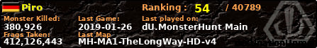 Piro | | PlayerID: | 13452 | | Overall MHT: | 412,126,443 | | Overall Deaths: | 8262 | | Overall Suicides: | 76 | | Overall TeamKills: | 154 | | Overall Distance traveled: | 15,436km | | Overall Time Spend on Server: | 61days 10h 37m 10s | | Maps Played: | 3874 | | Firstgame: | 2013-05-06 18:58:51 | | LastGame: | 2019-01-26 16:22:01 | | Player Ranking Place: | 54 | | Used Playernames: | Piro