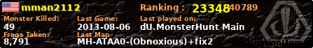 | Server | Map | LastGame | Score | Teamscore | Monsterleft | Deaths | Suicides | TKs | Distance | Playtime | |