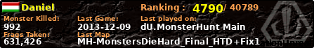 Daniel | | PlayerID: | 15031 | | Overall MHT: | 631,426 | | Overall Deaths: | 71 | | Overall Suicides: | 0 | | Overall TeamKills: | 9 | | Overall Distance traveled: | 85km | | Overall Time Spend on Server: | 00days 07h 07m 57s | | Maps Played: | 36 | | Firstgame: | 2013-10-26 23:39:24 | | LastGame: | 2013-12-09 22:40:26 | | Player Ranking Place: | 4790 | | Used Playernames: | Daniel