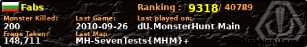 | Server | Map | LastGame | Score | Teamscore | Monsterleft | Deaths | Suicides | TKs | Distance | Playtime | |