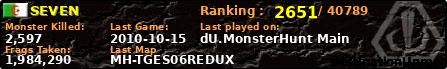SEVEN | | PlayerID: | 1536 | | Overall MHT: | 1,984,290 | | Overall Deaths: | 336 | | Overall Suicides: | 0 | | Overall TeamKills: | 0 | | Overall Distance traveled: | 303km | | Overall Time Spend on Server: | 01days 04h 41m 36s | | Maps Played: | 74 | | Firstgame: | 2010-09-27 04:06:53 | | LastGame: | 2010-10-15 21:50:27 | | Player Ranking Place: | 2651 | | Used Playernames: | SEVEN