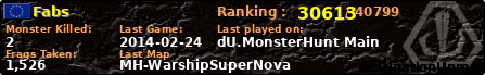 | Server | Map | LastGame | Score | Teamscore | Monsterleft | Deaths | Suicides | TKs | Distance | Playtime | |