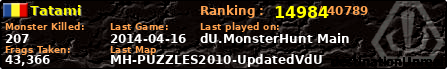| Server | Map | LastGame | Score | Teamscore | Monsterleft | Deaths | Suicides | TKs | Distance | Playtime | |