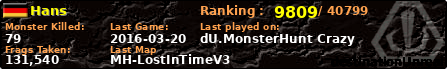 | Server | Map | LastGame | Score | Teamscore | Monsterleft | Deaths | Suicides | TKs | Distance | Playtime | |