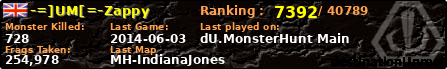 -=]UM[=-Zappy | | PlayerID: | 17193 | | Overall MHT: | 254,978 | | Overall Deaths: | 92 | | Overall Suicides: | 0 | | Overall TeamKills: | 0 | | Overall Distance traveled: | 75km | | Overall Time Spend on Server: | 00days 07h 06m 25s | | Maps Played: | 26 | | Firstgame: | 2014-05-27 19:53:08 | | LastGame: | 2014-06-03 23:37:10 | | Player Ranking Place: | 7392 | | Used Playernames: | -=]UM[=-Zappy