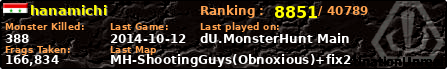 hanamichi | | PlayerID: | 17408 | | Overall MHT: | 166,834 | | Overall Deaths: | 72 | | Overall Suicides: | 5 | | Overall TeamKills: | 8 | | Overall Distance traveled: | 43km | | Overall Time Spend on Server: | 00days 04h 40m 41s | | Maps Played: | 20 | | Firstgame: | 2014-07-05 13:10:41 | | LastGame: | 2014-10-12 07:06:29 | | Player Ranking Place: | 8851 | | Used Playernames: | hanamichi kakabobo