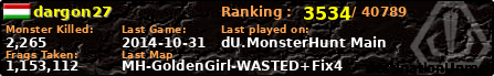 dargon27 | | PlayerID: | 17538 | | Overall MHT: | 1,153,112 | | Overall Deaths: | 261 | | Overall Suicides: | 0 | | Overall TeamKills: | 5 | | Overall Distance traveled: | 163km | | Overall Time Spend on Server: | 00days 14h 51m 38s | | Maps Played: | 59 | | Firstgame: | 2014-07-29 10:02:03 | | LastGame: | 2014-10-31 19:32:15 | | Player Ranking Place: | 3534 | | Used Playernames: | dargon27