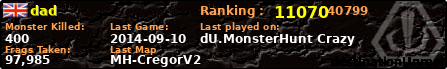 | Server | Map | LastGame | Score | Teamscore | Monsterleft | Deaths | Suicides | TKs | Distance | Playtime | |