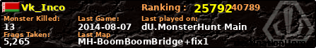 | Server | Map | LastGame | Score | Teamscore | Monsterleft | Deaths | Suicides | TKs | Distance | Playtime | |