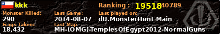 | Server | Map | LastGame | Score | Teamscore | Monsterleft | Deaths | Suicides | TKs | Distance | Playtime | |