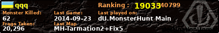 | Server | Map | LastGame | Score | Teamscore | Monsterleft | Deaths | Suicides | TKs | Distance | Playtime | |
