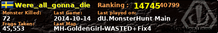 | Server | Map | LastGame | Score | Teamscore | Monsterleft | Deaths | Suicides | TKs | Distance | Playtime | |