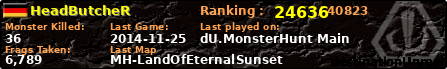 | Server | Map | LastGame | Score | Teamscore | Monsterleft | Deaths | Suicides | TKs | Distance | Playtime | |