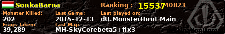 | Server | Map | LastGame | Score | Teamscore | Monsterleft | Deaths | Suicides | TKs | Distance | Playtime | |