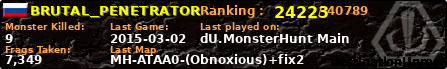![]() | MH-ATAA0-(Obnoxious)+fix2 | 2015-03-02 22:38:26 | 6,260 | 392485 | 1 | 0 | 0 | 0 | 0,33km | 00:57:39 |