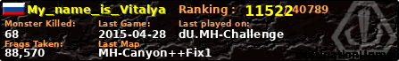 | Server | Map | LastGame | Score | Teamscore | Monsterleft | Deaths | Suicides | TKs | Distance | Playtime | |