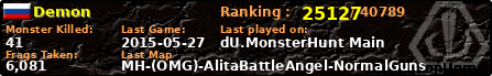 | Server | Map | LastGame | Score | Teamscore | Monsterleft | Deaths | Suicides | TKs | Distance | Playtime | |