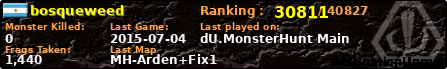 | Server | Map | LastGame | Score | Teamscore | Monsterleft | Deaths | Suicides | TKs | Distance | Playtime | |