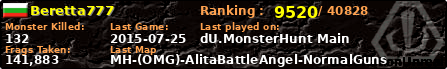 | Server | Map | LastGame | Score | Teamscore | Monsterleft | Deaths | Suicides | TKs | Distance | Playtime | |