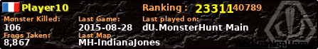 | Server | Map | LastGame | Score | Teamscore | Monsterleft | Deaths | Suicides | TKs | Distance | Playtime | |
