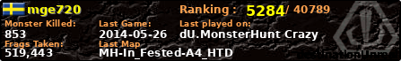 mge720 | | PlayerID: | 2225 | | Overall MHT: | 519,443 | | Overall Deaths: | 205 | | Overall Suicides: | 9 | | Overall TeamKills: | 2 | | Overall Distance traveled: | 164km | | Overall Time Spend on Server: | 00days 14h 34m 38s | | Maps Played: | 61 | | Firstgame: | 2010-11-29 09:45:09 | | LastGame: | 2014-05-26 21:00:01 | | Player Ranking Place: | 5284 | | Used Playernames: | mge720
