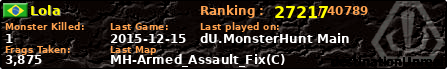 | Server | Map | LastGame | Score | Teamscore | Monsterleft | Deaths | Suicides | TKs | Distance | Playtime | |
