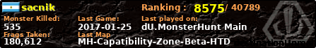 | Server | Map | LastGame | Score | Teamscore | Monsterleft | Deaths | Suicides | TKs | Distance | Playtime | |