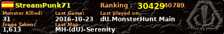 | Server | Map | LastGame | Score | Teamscore | Monsterleft | Deaths | Suicides | TKs | Distance | Playtime | |
