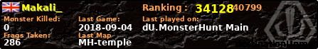 | Server | Map | LastGame | Score | Teamscore | Monsterleft | Deaths | Suicides | TKs | Distance | Playtime | |