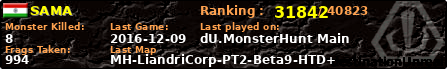| Server | Map | LastGame | Score | Teamscore | Monsterleft | Deaths | Suicides | TKs | Distance | Playtime | |