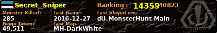 | Server | Map | LastGame | Score | Teamscore | Monsterleft | Deaths | Suicides | TKs | Distance | Playtime | |