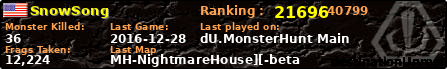 ![]() | MH-SkyWarsV2 | 2016-12-28 03:51:55 | 12,224 | 136658 | 1 | 6 | 0 | 1 | 5,26km | 00:30:28 |