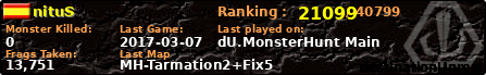 | Server | Map | LastGame | Score | Teamscore | Monsterleft | Deaths | Suicides | TKs | Distance | Playtime | |