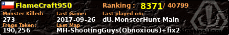 FlameCraft950 | | PlayerID: | 28925 | | Overall MHT: | 190,256 | | Overall Deaths: | 104 | | Overall Suicides: | 0 | | Overall TeamKills: | 2 | | Overall Distance traveled: | 63km | | Overall Time Spend on Server: | 00days 05h 16m 06s | | Maps Played: | 20 | | Firstgame: | 2017-02-25 04:06:28 | | LastGame: | 2017-09-26 01:30:20 | | Player Ranking Place: | 8371 | | Used Playernames: | FlameCraft950