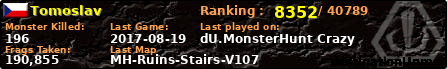 | Server | Map | LastGame | Score | Teamscore | Monsterleft | Deaths | Suicides | TKs | Distance | Playtime | |