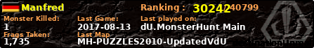 | Server | Map | LastGame | Score | Teamscore | Monsterleft | Deaths | Suicides | TKs | Distance | Playtime | |