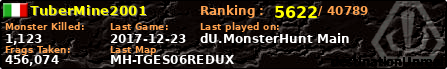 TuberMine2001 | | PlayerID: | 29822 | | Overall MHT: | 456,074 | | Overall Deaths: | 89 | | Overall Suicides: | 0 | | Overall TeamKills: | 0 | | Overall Distance traveled: | 97km | | Overall Time Spend on Server: | 00days 07h 03m 43s | | Maps Played: | 26 | | Firstgame: | 2017-05-27 16:36:18 | | LastGame: | 2017-12-23 17:22:11 | | Player Ranking Place: | 5622 | | Used Playernames: | TuberMine2001 GamerTuberMine2001