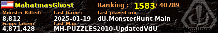 MahatmasGhost | | PlayerID: | 29884 | | Overall MHT: | 4,871,428 | | Overall Deaths: | 317 | | Overall Suicides: | 1 | | Overall TeamKills: | 0 | | Overall Distance traveled: | 397km | | Overall Time Spend on Server: | 01days 05h 18m 36s | | Maps Played: | 109 | | Firstgame: | 2017-06-05 06:52:30 | | LastGame: | 2025-01-19 18:43:41 | | Player Ranking Place: | 1583 | | Used Playernames: | MahatmasGhost JustShootMe Grover Jimm400 RagnorRock Impactor TOM_Terrific JimmFrkn400 BarnyFife SpawnOfWuhan BlisterPole Dreieinigkeit Maybe_Jimm400 ChocolateCow Ms_WarLord Demonos Karnivore Cowmagedon Deaths_Shadow Uncle_Bob DestroyerOfWorlds PartyGirl NoisyBob pAuLaS_bRoThEr uNhOlY_tRiNiTy ArKillMeedes Barbarella jImM4o0