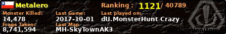 Metalero | | PlayerID: | 30435 | | Overall MHT: | 8,741,594 | | Overall Deaths: | 974 | | Overall Suicides: | 15 | | Overall TeamKills: | 0 | | Overall Distance traveled: | 833km | | Overall Time Spend on Server: | 02days 21h 47m 09s | | Maps Played: | 255 | | Firstgame: | 2017-08-07 02:52:18 | | LastGame: | 2017-10-01 02:17:29 | | Player Ranking Place: | 1121 | | Used Playernames: | Metalero Pesao