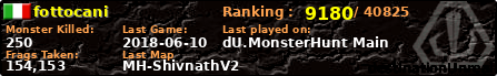 | Server | Map | LastGame | Score | Teamscore | Monsterleft | Deaths | Suicides | TKs | Distance | Playtime | |