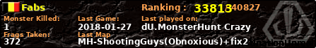| Server | Map | LastGame | Score | Teamscore | Monsterleft | Deaths | Suicides | TKs | Distance | Playtime | |