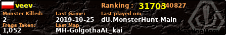| Server | Map | LastGame | Score | Teamscore | Monsterleft | Deaths | Suicides | TKs | Distance | Playtime | |