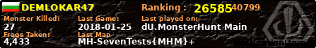 | Server | Map | LastGame | Score | Teamscore | Monsterleft | Deaths | Suicides | TKs | Distance | Playtime | |