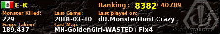 | Server | Map | LastGame | Score | Teamscore | Monsterleft | Deaths | Suicides | TKs | Distance | Playtime | |