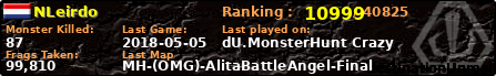 | Server | Map | LastGame | Score | Teamscore | Monsterleft | Deaths | Suicides | TKs | Distance | Playtime | |